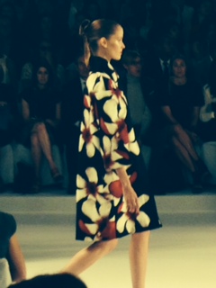 Last week I had the privilege of seeing one of the most beautiful fashion shows at New York Fashion Week of this or any other season, Carolina Herrera’s Spring 2015 collection. The collection was inspired by the “color code of a flower.” The show featured stunning gowns, beautiful coats and brightly colored sheath dresses. The color palette was vibrant pinks, iris blues, majestic purples, paired with gray tones and soft yellow. As always, Carolina Herrera’s garments were distinctly feminine, with gorgeous appliqués and soft folds. Some of the garments featured digitized blooms (see the dress above.) The show was attended by the cream of New York society, celebrities and of course Vogue’s Anna Wintour. Little green trees lined the runway, giving the appearance of an elite garden party. According to the Daily Mail, Ms. Herrera’s Spring 2015 show may have cost as much as 1 million dollars.