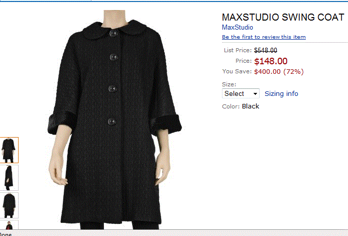 Of course, after the event I set off on a quest to find a replica of that amazing coat to share with my readers. After much searching, I found a good match at a great price. Check out MaxStudio’s vintage inspired Swing Coat, on sale at Amazon.com. The coat retailed for $548.00 and is now on sale for $148.00 US. Top it off with a vintage inspired brooch from H&M, Forever21 or QVC’s Jackie Kennedy collection for a little Audrey style of your own for a fabuless price.