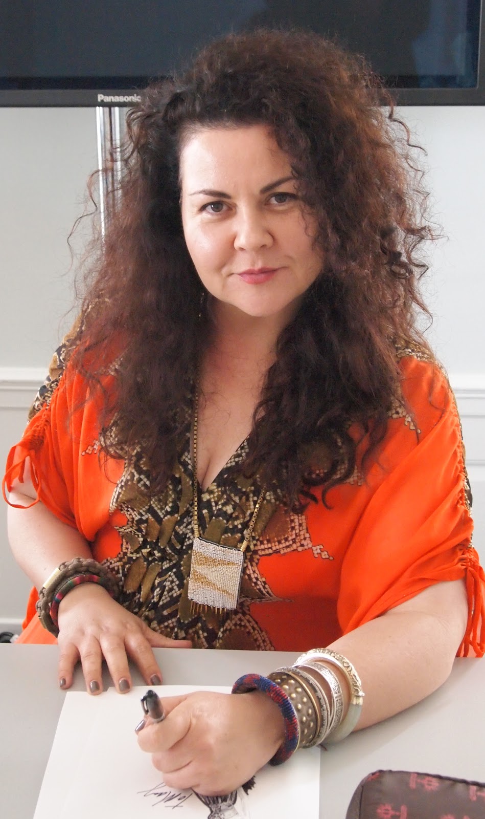 | Pictured: The Designer, Cynthia Vincent signing a sketch for me (photo: M. Hall) |