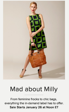 | Pictured: Look for Milly by Michelle on sale Jan. 26th at Gilt Groupe. |
